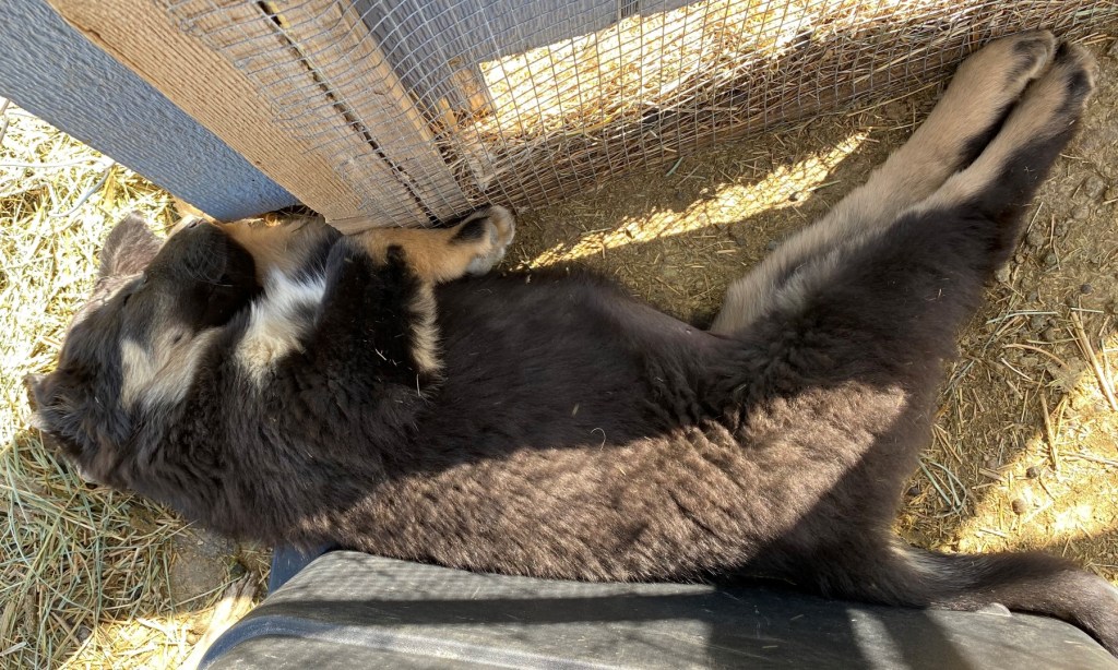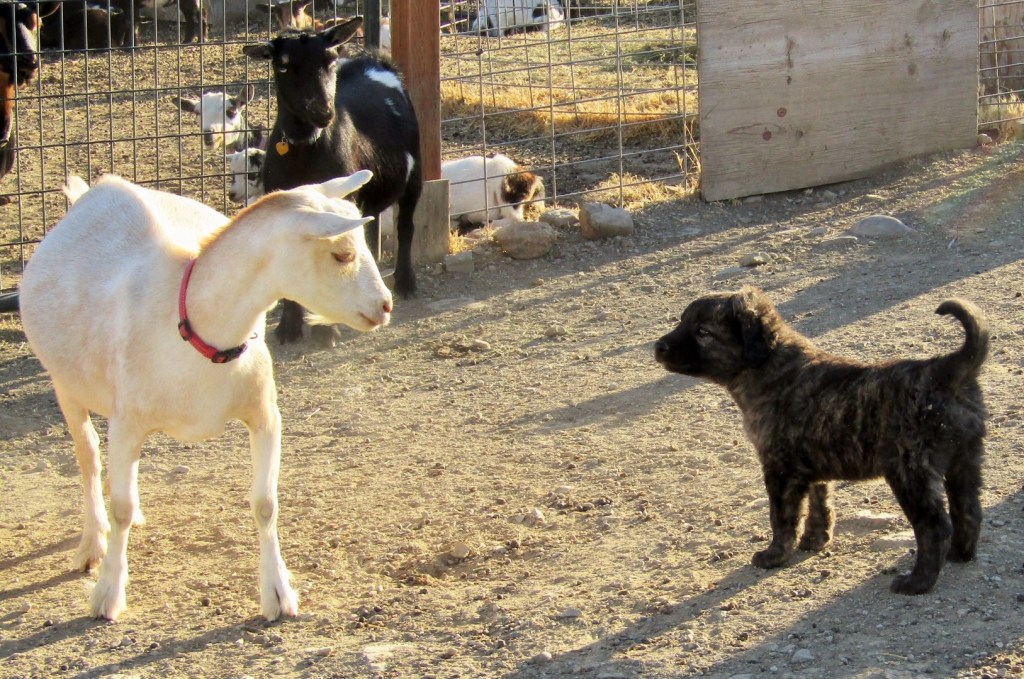 Puppies turned 6 weeks old on 20 June. Mom is given copious amounts of garlic and raw pumpkins seeds with her dinner every evening. These pups are chemical and pharmaceutical-free, just as nature intended. They mingle with their parents and the goat herd, plus a few dinosaurs.