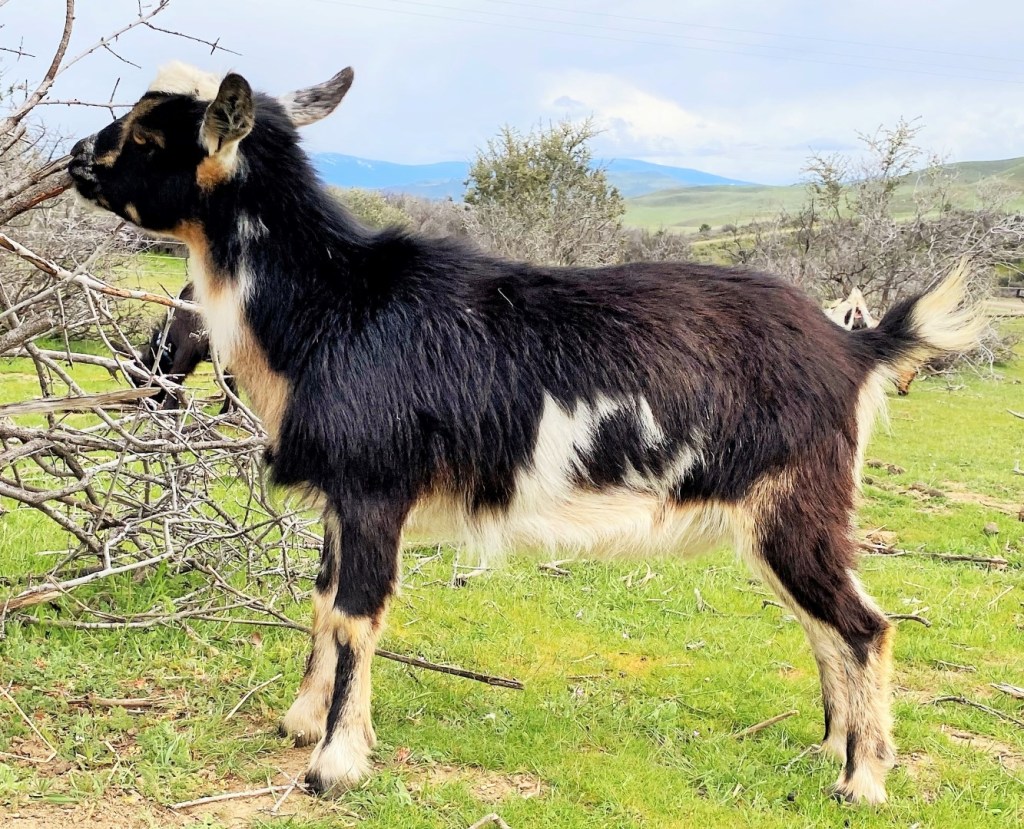 Black roan & white, kidded 4 May 2023 to Inara and Sebastian *S *B . Pedigree