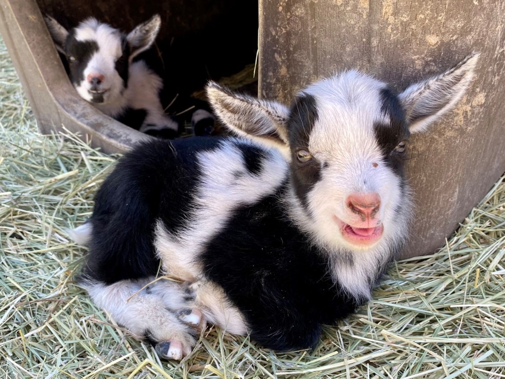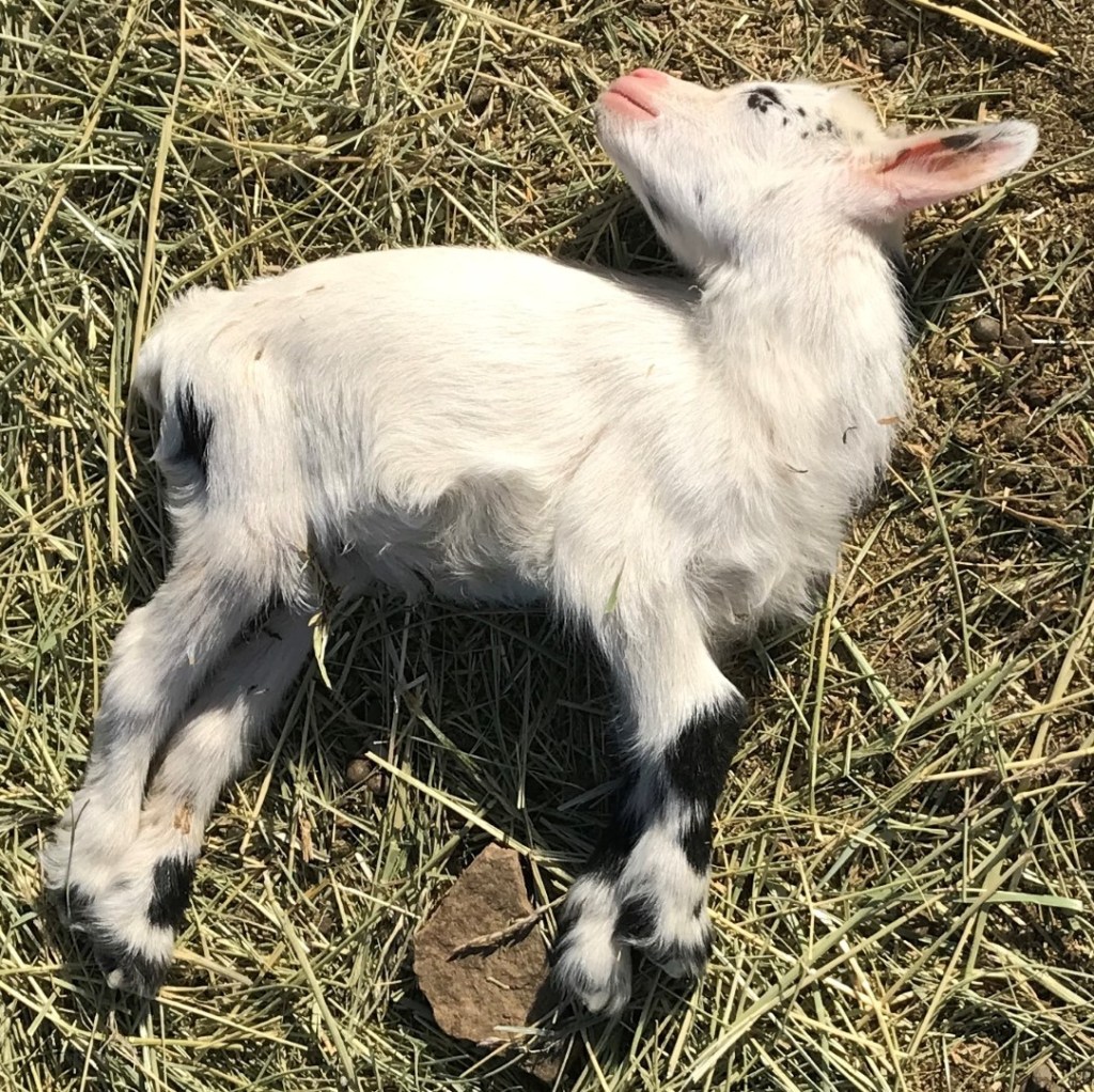 Elizabeth – Polled, white with black spots, kidded 10 March 2023 to Stacy 2*D and Austin. Pedigree See her littermate Shawna 3*D who produced the most milk, and highest butterfat and protein on the first milk test of 2025 as a FF!