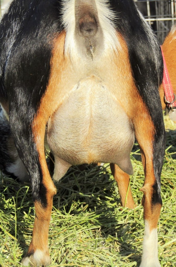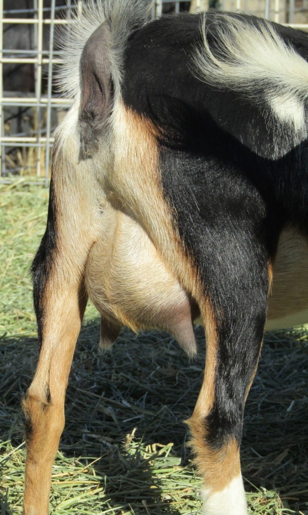 Dahlia was easily one of my top picks for 2023 kids! She makes such a beautiful, elegant profile. 🥰 Dahlia had just one kid in 2024 and was on milk test. Her weights were rather terrible, but I really liked her teeny FF udder! – Good-sized teats with great orifices, and super pleasant to hand-milk. Of course I’m not too crazy about how her teats point a bit outward, but I love how easy it is to squish down her udder to empty out completely. She has two beautiful babies in 2025, both keepers.