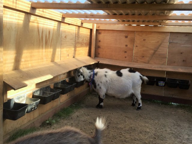 - What’s in our ‘mineral bar’? The bar started out as a 4×8′ chicken tractor-style structure. But it just wasn’t big enough. So a 6×8′ wing was added on. Currently being offered in the free-choice bar: Kelp, Copper, Zinc, MSM, Sulphur, Ascorbic acid, Molybdenum, Phosphorous, Boron, Anti-parasite herbal mix, Selenium, Iodine, Calcium, Magnesium, Potassium, Silicon, Vitamins B & C, Vitamins A D & E, Cobalt, Iron, Manganese, Acid neutralizer, Alkaline neutralizer, Animal salt, Payback goat minerals. Coming soon: Himalayan salt.
