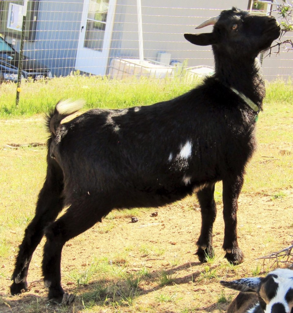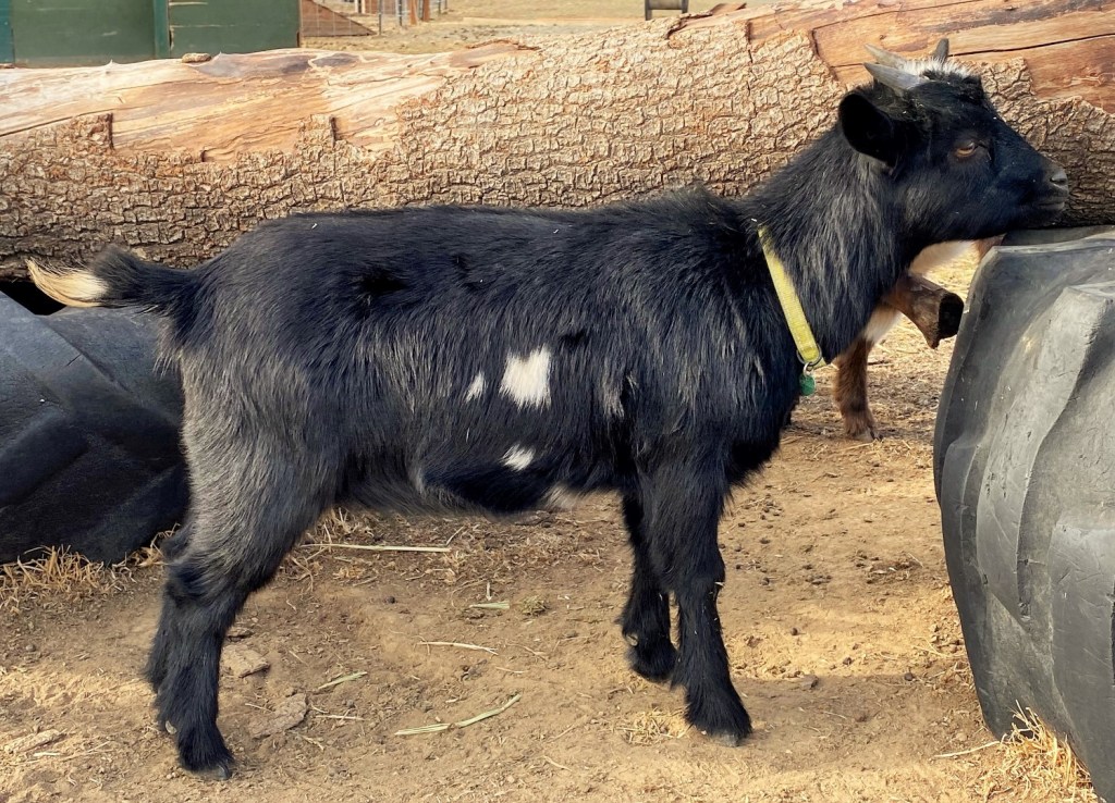 Scirocco did a great job with her first baby in 2023. Easy birth, good mom. She’s been on the milking stand several times and did great! Scirocco’s second horn has come off (it was banded). $350
